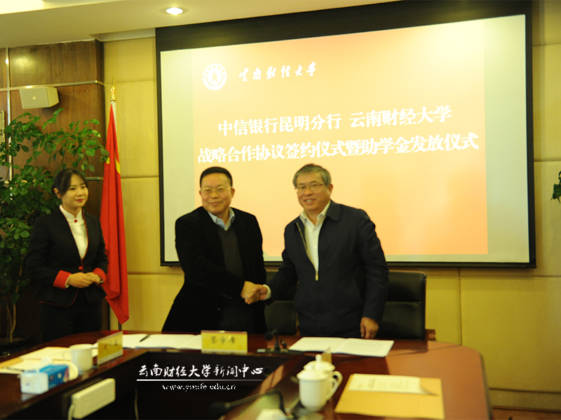 1月3日上午,beat365与中信银行昆明分行战略合作协议签约仪式在致远楼506举行,中信银行昆明分行行长芮昌永和beat365校长伏润民分别代表战略合作双方签署协议。中信银行昆明分行副行长冯森林、行长助理董舸征,beat365副校长胡海彦出席签约仪式,仪式由党委副书记桂正华主持。