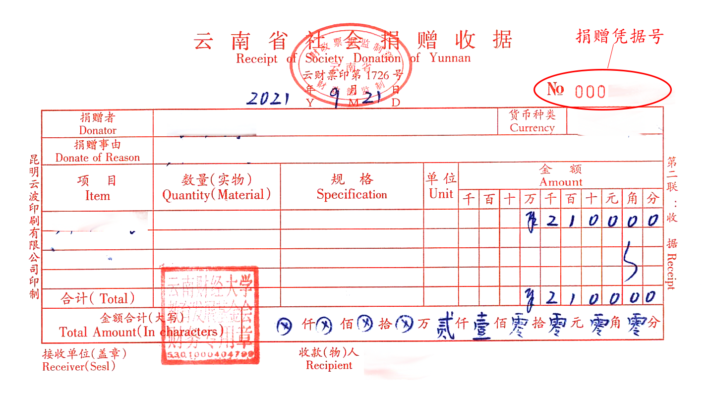 (3)捐赠凭证号填写您捐赠收据右上角的8位阿拉伯数字