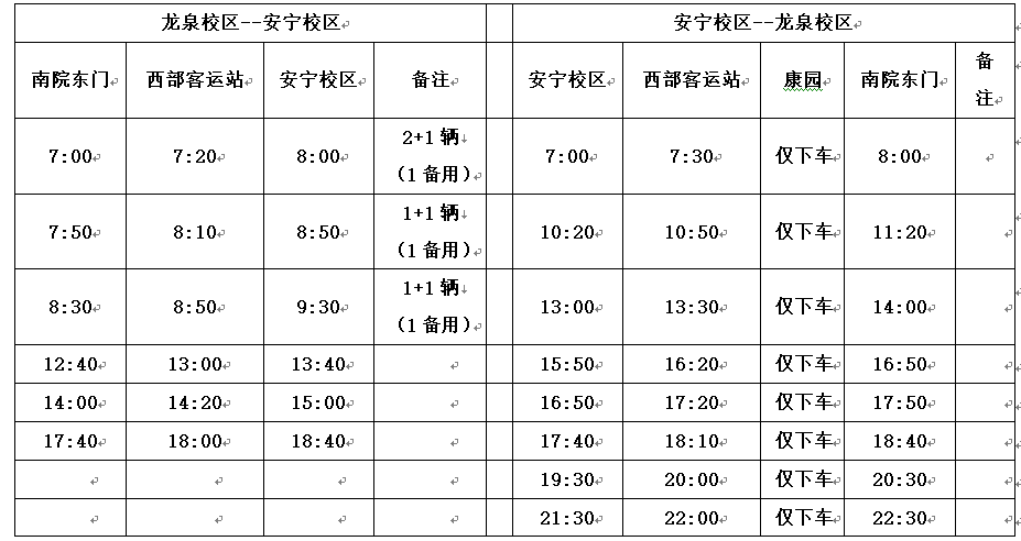 学校2023年劳动节放假期间教师交通车运行班次安排如下: