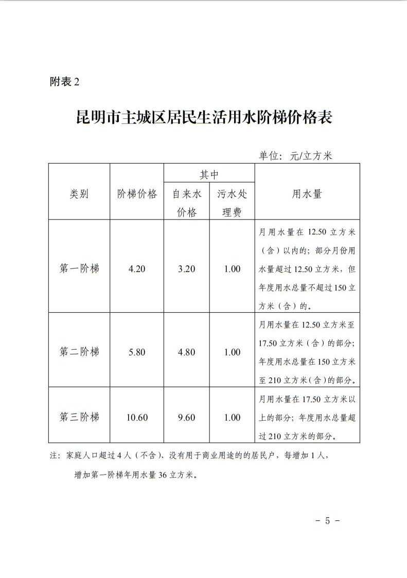 附件:昆明市发展和改革委员会关于调整昆明市主城区供水价格的通知