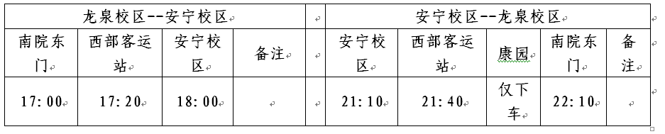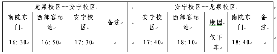 学校2024年元旦节放假期间教师交通车运行班次安排如下: