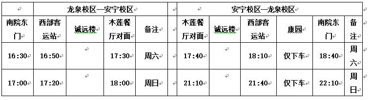 星期六、星期日教师交通车发车时刻表(2024年1月15日-1月26日)
