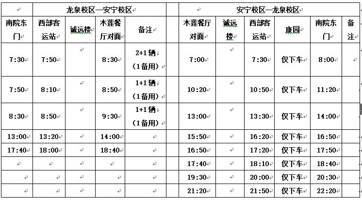 星期一到星期五教师交通车发车时刻表(2024年1月15日-1月26日)