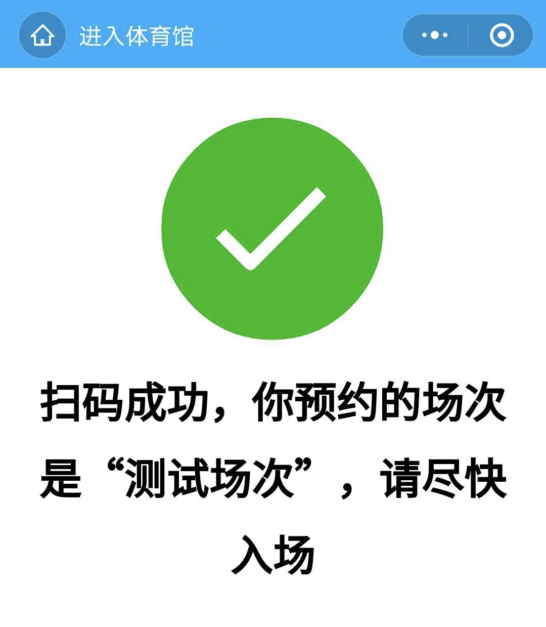 第六步,根据预约场次的开放时间,提前20分钟,到相应的体育馆扫码入场,入场时,需要将扫码结果出示给场地工作人员。如下图所示: