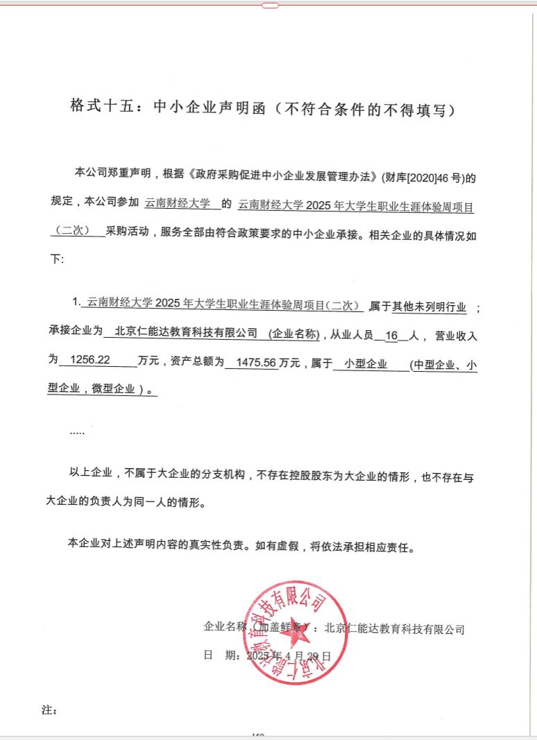 名称:beat365英国官方网站2025年大学生职业生涯体验周项目(二次) 服务范围: (一)学生生涯体验:通过生涯体验周活动,完成学生职业生涯意识启蒙,帮助学生学习有效的职业生涯方法,了解职业生涯规划的流程(自我探索-职业世界探索-自我目标定位),推动学校职业生涯规划的普及及认知深入。具体包括: 1、自我探索活动:学生在活动中完成自我的性格、兴趣、价值观等维度的探索; 2、职业世界探索活动:学生在活动中完成外部的职业环境的如行业、地区、职业等维度的探索; 3、自我目标定位:通过自己的职业生涯发展状况的对照与反思,制定学业规划,树立职业发展目标; (二)职业生涯规划课程的建设:对学校开设的职业规划课程进行设计并协助开发,提供职业生涯规划课程培训助力教师团队的建设。 (三)职业生涯规划大赛校级决赛帮扶:对进入职业生涯规划大赛校级决赛的同学进行培训,帮助其打磨项目;提供校级决赛评委。 (四)生涯咨询室建设的指导:通过提供咨询及建设督导,帮助学校完成咨询室的建设。 服务要求: (一)学生生涯体验活动 1、应具备同类型的项目合作经验,提供以下活动材料: (1)符合学校实际情况的定制化活动设计方案, (2)活动所需的专业道具、物料及使用说明; (3)活动学生手册、志愿者操作手册及工具(一人一套); 2、应具备同类型项目的执行经验,安全及专业执行活动,包括: (1)按照活动设计方案实施活动; (2)确保校方活动负责人了解活动整体流程与细节; (3)安排专人协助校方确定及布置场地; (4)对活动的志愿者(活动关主)进行系统的培训; (5)开展现场指导与督导、解答活动中所涉及的细节问题; (6)每位参与活动学生在完成相关活动后,能在手机端实时收到测评结果,并最终获得生涯体验周活动学生端测评报告一份(手机版)。 (7)活动结束后,成交供应商需要对校方提供生涯体验周活动整体调研报告。 (二)职业生涯规划课程的建设 1、针对任课老师开展不少于3天的课程设计培训; 2、提供职业生涯规划课程完整的参考课件与教案; 3、提供相应的咨询服务,时间为一年。 (三)职业生涯规划大赛校级决赛帮扶 1、针对入围校级决赛选手进行集中赛前辅导1次,时间不少于2小时; 2、提供职业生涯规划大赛校级决赛评委 注:校级规划大赛决赛评审专家需拥有全国或省级决赛评审经验。 (四)生涯咨询室建设的指导 1、提供远程咨询服务,时间为1年; 提供不少于2次针对咨询师的远程督导。 交付时间:根据学校时间交付。 服务标准: (一)大学生生涯体验周 1、生涯体验周活动内容应达到合同标准; 2、志愿者的培训内容达到合同标准; 3、中标方应保障整个生涯周活动组织井然有序、后勤保障安全有力、学员档案真实完整、教学台账全面可靠,后期反馈科学准确。 4、后期反馈团体报告中需呈现本校学生做完活动后数据与全国高校参与活动的学生数据做对比,要求数据量超过二十万。活动结束后,将本校参与活动的学生数据与同类型高校参与活动的学生数据对比。 (二)职业生涯规划课程的建设培训 1、3天培训,提供全部的教案与课件,任课老师可以直接使用; 2、提供相应的咨询服务,时间为一年。 (三)职业生涯规划大赛校级决赛帮扶 1、针对入围决赛选手进行集中赛前辅导1次,时间为2小时,辅导方向符合大赛的内容要求; 2、提供经验丰富的职业生涯规划大赛校级决赛评委。 (四)生涯咨询室建设的指导 为咨询室提供指导性建设方案,提供远程咨询服务,时间为1年,提供2次针对咨询师的远程督导。 |