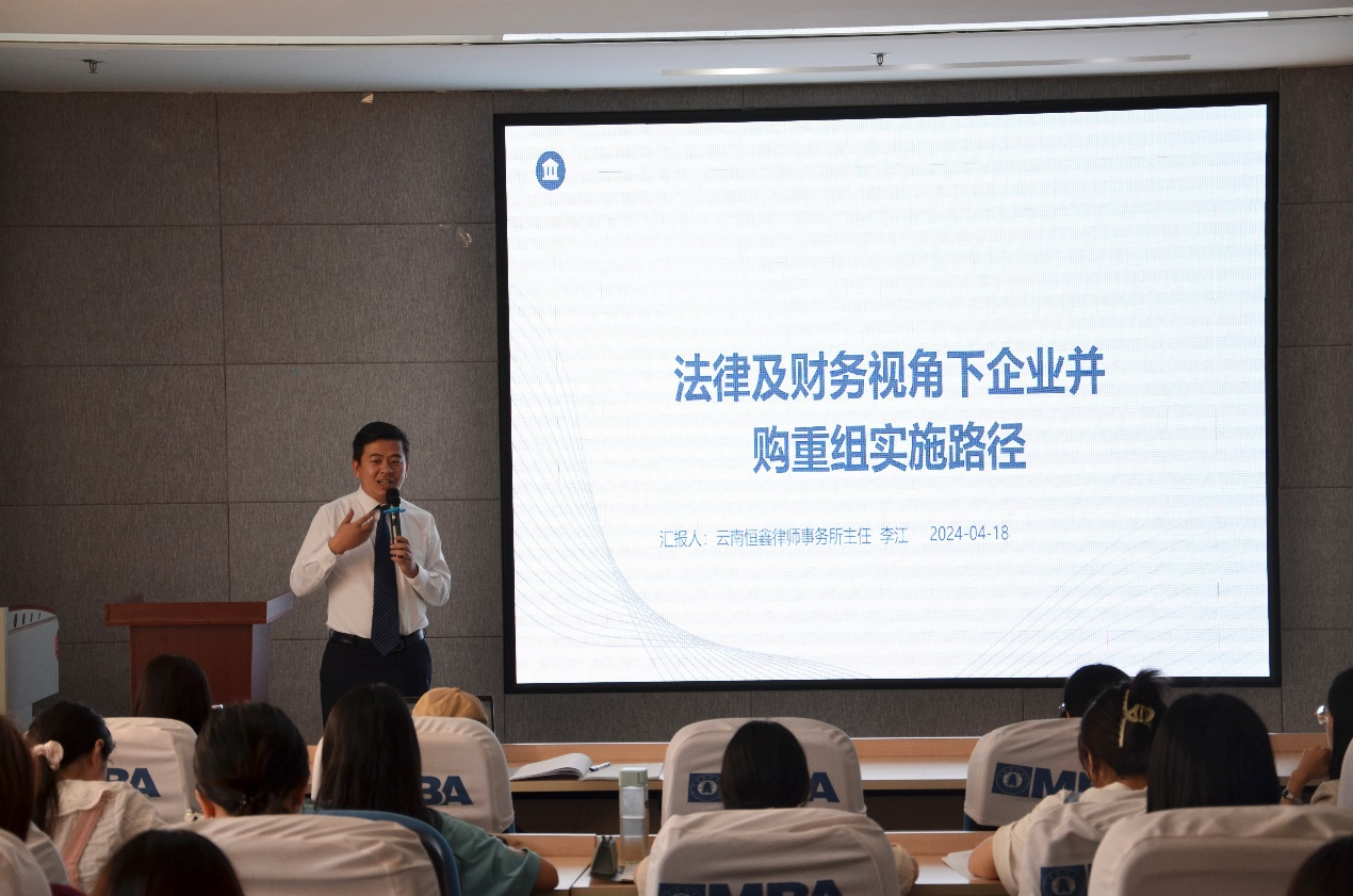 4月18日,beat365英国官方网站2024年会计论坛在beat365逸夫楼410举办,云南恒鑫律师事务所主任李江以“法律财务视角下企业并购重组实施路径”为题进行讲座。本次论坛由会计学院副院长吴昊旻主持,会计学院100余名师生代表参加。