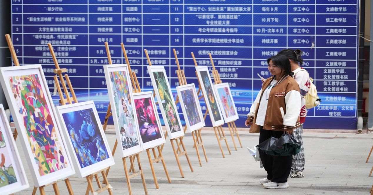 此外,蓝丝带社科普及志愿服务队采用艺术画展综合陈设的方式,在安宁校区修远楼中庭展出了68件孤独症儿童的插画再设计作品和100件主题文创产品。本次展览在宣传孤独症儿童公益教育理念的同时,呼吁当代大学生发扬志愿者精神,关注弱势群体,积极承担社会责任。