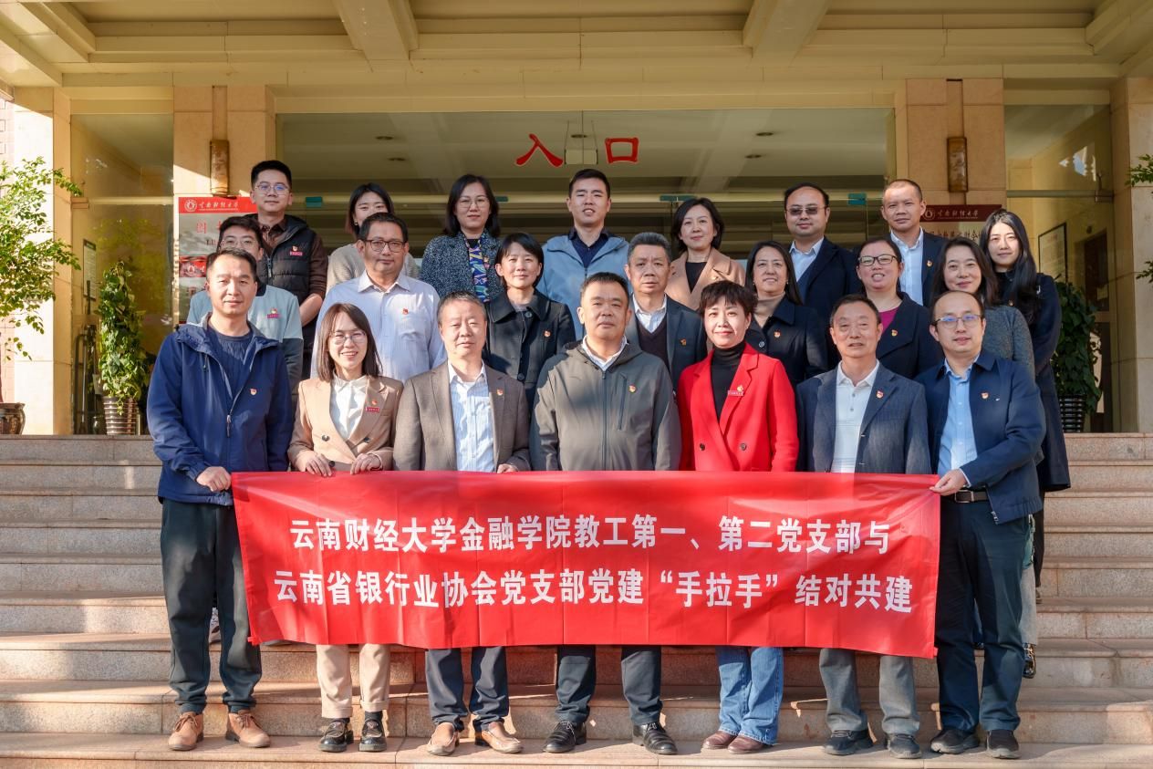 11月24日,金融学院教工第一党支部、教工第二党支部与云南省银行业协会党支部联合开展党建工作“手拉手”结对共建活动。国家金融监督管理总局云南监管局党委委员、副局长袁震,云南省银行业协会专职副会长李永兴,金融学院党委书记胡小珊、副院长杨国辉等近30人参加活动。