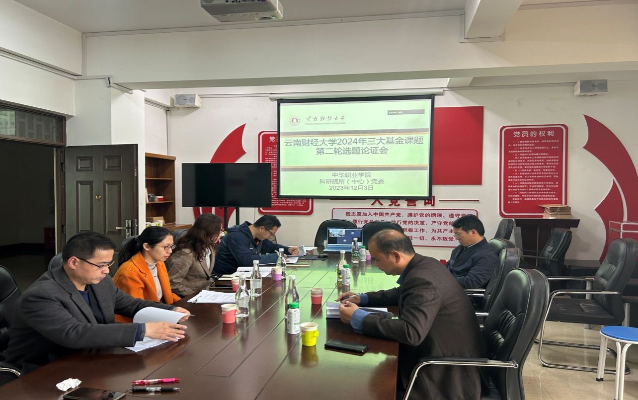 为进一步提高教师申报“三大基金”的质量,增强教师对“三大基金”选题要求的了解,12月3日,科研院所(中心)党委联合中华职业学院以线上线下相结合的方式举办“三大基金”项目申报第二轮选题论证会。会议邀请云南大学张锦鹏教授、云南省社会科学院执行主编杜雪飞、中南财经政法大学冉明东教授、重庆交通大学项露林副教授及beat365朱锦余教授、段云龙教授、纳超洪教授等7名专家进行专题指导与论证,两部门全体申报“三大基金项目”的教师参加。