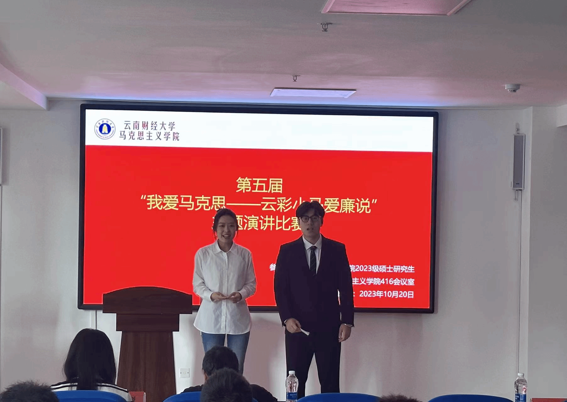 为深入学习贯彻落实党的二十大精神,推动《关于加强新时代廉洁文化建设的意见》落地生根,引导广大学生进一步夯实清正廉洁思想根基、厚植廉洁奉公文化基础、培养廉洁自律道德操守、弘扬崇廉拒腐社会风尚,10月20日,马克思主义学院组织开展第五届“我爱马克思——云财小马爱廉说”主题演讲比赛。
