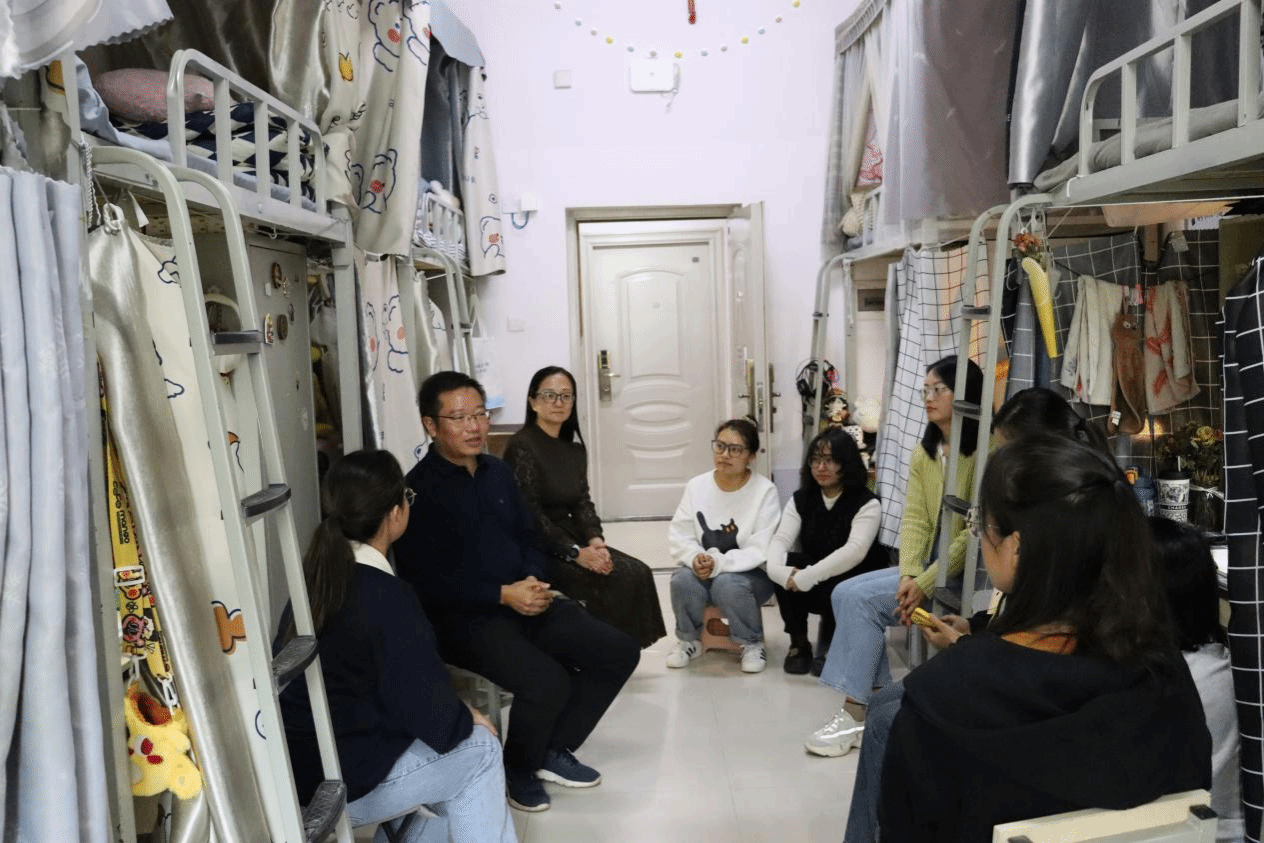 走访过程中,业光远对宿舍环境以及宿舍管理工作进行查看和指导,与同学们进行了亲切交谈,并关心和详细了解了同学们的就业意向。与毕业班学生在交谈中,业光远从顺应时代、自强不息、择业就业、人际交往等方面与同学们分享了自己的认识和思考,他勉励同学们要做一个理智、成熟、坚强的人,在人生道路上越走越好。