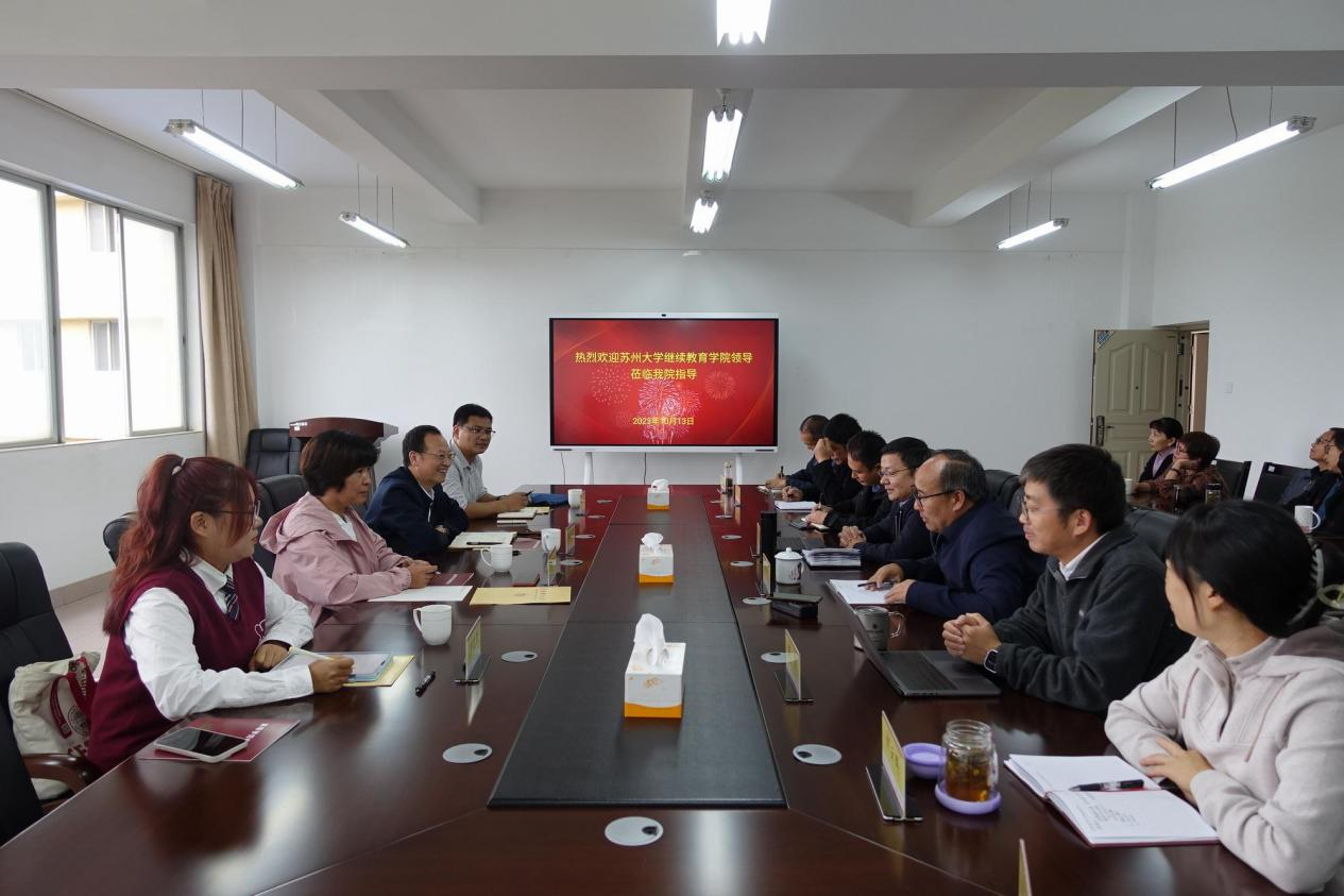 金国兴代表学校和学院对苏州大学继续教育学院来访表示热烈欢迎。姚建峰介绍了beat365英国官方网站的基本情况、继续教育学院的发展历程,以及开展学历和非学历继续教育的办学和管理情况。
