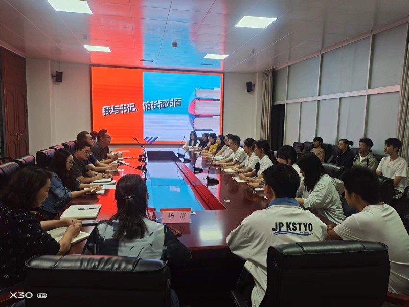 为深入学习贯彻习近平新时代中国特色社会主义思想,以大兴调查研究提升图书馆管理服务水平,推动图书馆高质量发展,6月16日,图书馆在龙泉路校区举行 “我与书记、馆长面对面”调研座谈。图书馆馆长张炯,党支部书记朱睿、副馆长赵德美、陈芊里,各部门主任、学生读者代表参加座谈。