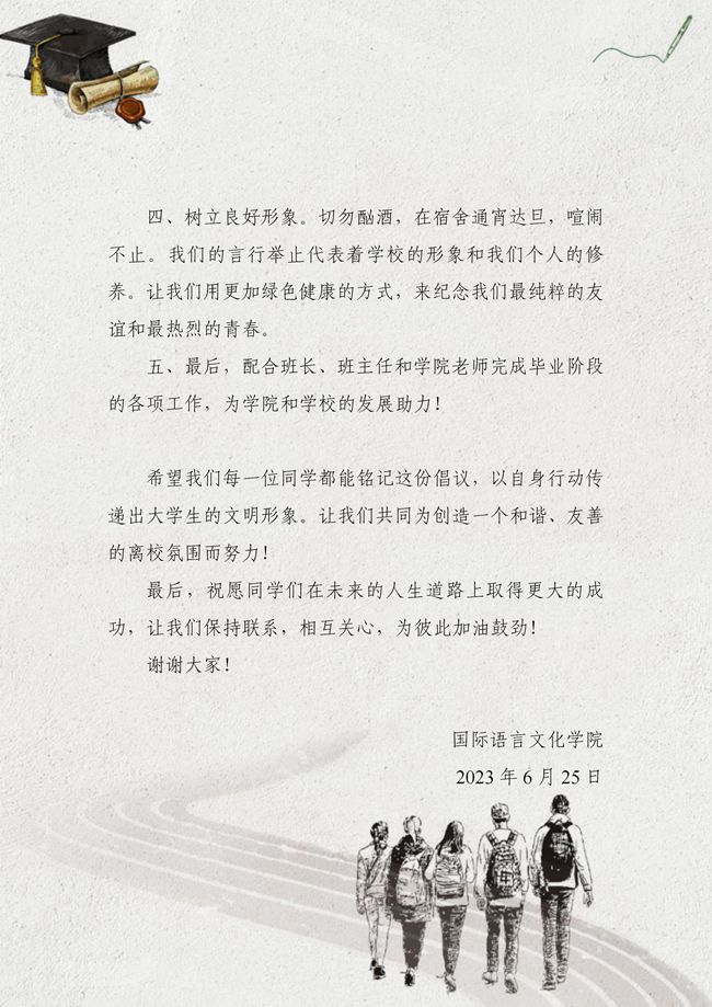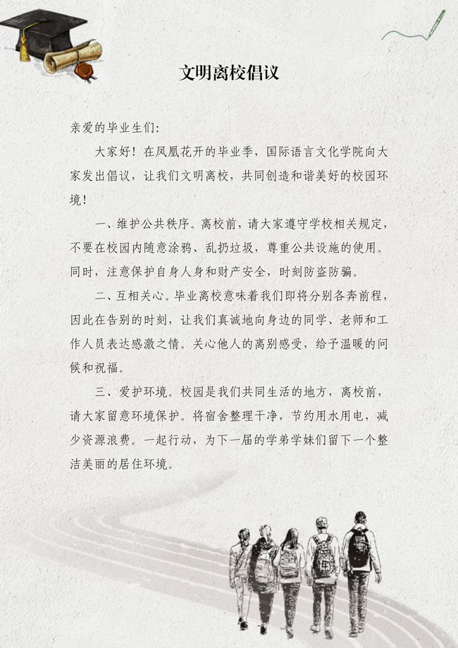 国际语言文化学院向全院学生发出文明离校倡议