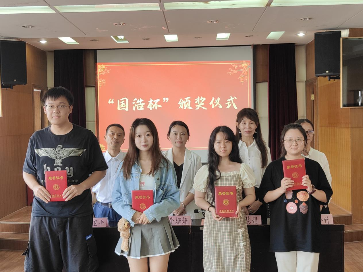 毕业典礼后,学院领导为“国浩杯”模拟法庭竞赛获奖同学代表和2022年度共青团工作先进集体及个人进行表彰并颁发证书。