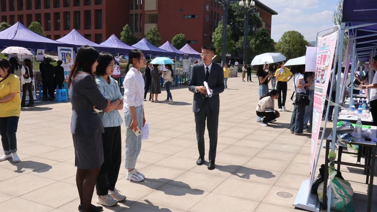 5月19日,由传媒与设计艺术学院、旅游与酒店管理学院联合举办的2023届毕业生专场招聘会在安宁校区图书馆前广场举行。来自传媒与设计艺术学院、旅游与酒店管理学院的500余名本科生、研究生参加招聘会。