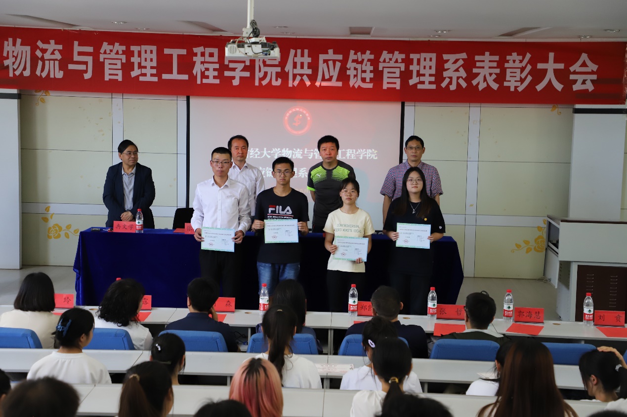 供应链管理专业的同学们不仅积极参加学校、学院的学术类竞赛,在国家级专业比赛中也活跃着云财供应人的身影。beat365英国官方网站供应链管理专业两年来,以“比铁还硬,比钢还强”的团结之力,以“风雨无阻向前进”的不懈奋斗,支撑师生们创下“人心齐,泰山移”的佳绩。学院领导依次为在国家级、省级、校级和院级学术专业类竞赛中取得优异成绩的优秀团体、优秀个人颁发荣誉证书。