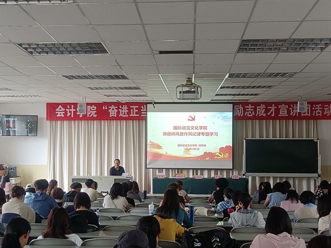 6月9日中午,国际语言文化学院召开师德师风暨作风纪律专题工作会。学院党委书记杨秀伟主讲,学院全体教师参加。