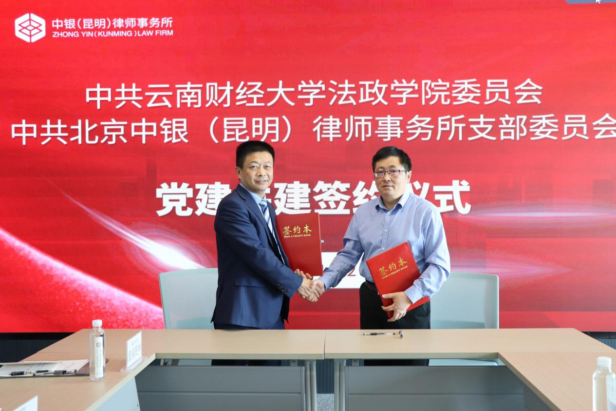 4月20日,法政学院副院长石现明带队前往北京中银(昆明) 律师事务所开展访企拓岗座谈并签署合作共建协议,北京中银(昆明)律师事务所主任、党支部书记李建熊以及律所的各位律师参加座谈。座谈会上,李建熊详细介绍北京中银(昆明)律师事务所办公环境、发展战略、发展近况以及党建开展情况,并播放律所宣传片。双方在会议室进行党建共建和实践教学基地签约仪式和授牌仪式。双方就为学生提供实践机会、推进深度交流合作达成共识。