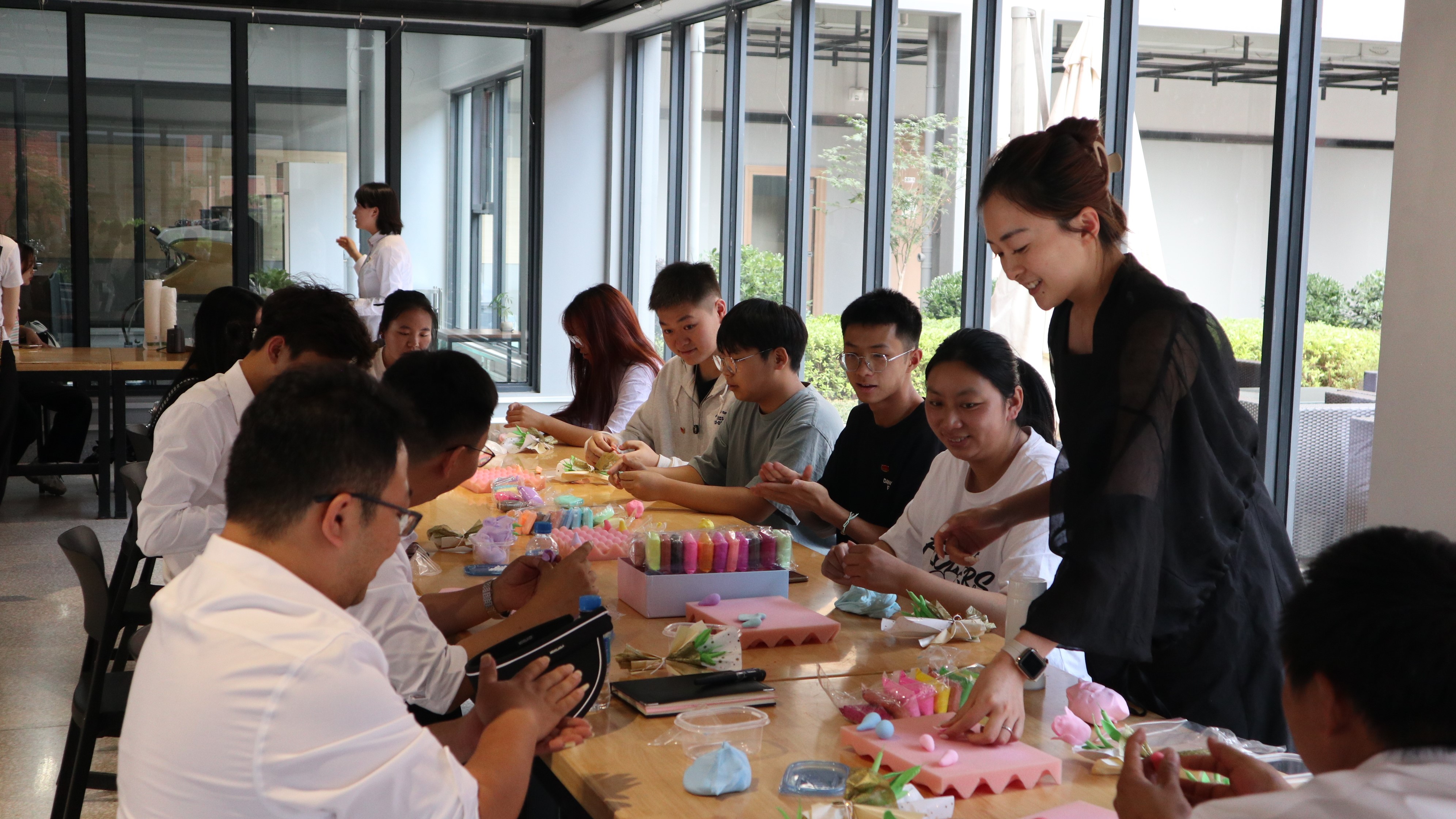 在随后举行的咖啡、扎染、陶艺和软陶等体验活动中,参加活动的师生体验了手冲咖啡、扎染、陶艺、软陶等项目,三方针对主题教育的学习交流进行了深入探讨。