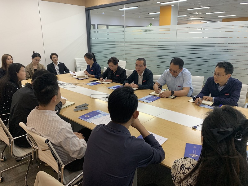 杨大伟对学校一行到访表示热烈欢迎,介绍了新东方教育科技集团的业务范围、发展趋势、人才需求和近年来取得的成绩。他表示,新东方非常愿意在实习就业岗位、就业应聘辅导、学生英语能力提升、出国留学资讯分享等方面提供支持,期待双方共同推进产教融合、人才培养、党组织共建等。参会的企业领导均表示欢迎更多的财大学子到新东方工作。