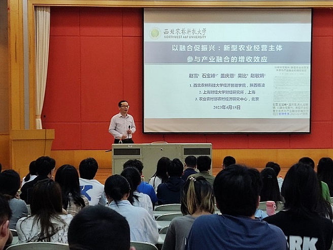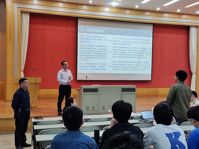 石宝峰做主题为《以融合促振兴:新型农业经营主体参与产业融合的增收效应》的讲座,他分享了最近的学术成果——以融合促振兴:新型农业经营主体参与产业融合的增收效应。石宝峰分别从文献综述、理论分析、数据来源和模型设定、新型农业经营主体产业融合水平分析以及实证分析五个部分,进行逐一论述。随后,石宝峰与在场的师生就如何界定产业融合形式这一问题展开了探讨,他指出,在进行学术界定时,要从实地调查中去考察界定的内容是否合适。最后,石宝峰还指出在研究生的学习中要注重培养自己的执行力和组织力,在研究中保持自己的初心。石宝峰的报告,以产业融合带动产业振兴,为农村在产业振兴中的路径,提供了很好的方向和指导。