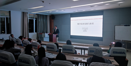王铁男从数字经济发展、产业数字化、数字产业化、数字化治理、产业数字化实践5个模块为同学们做了分享。他把学术性较强的专业知识同企业实践结合起来,让数字经济变的的通俗易懂。