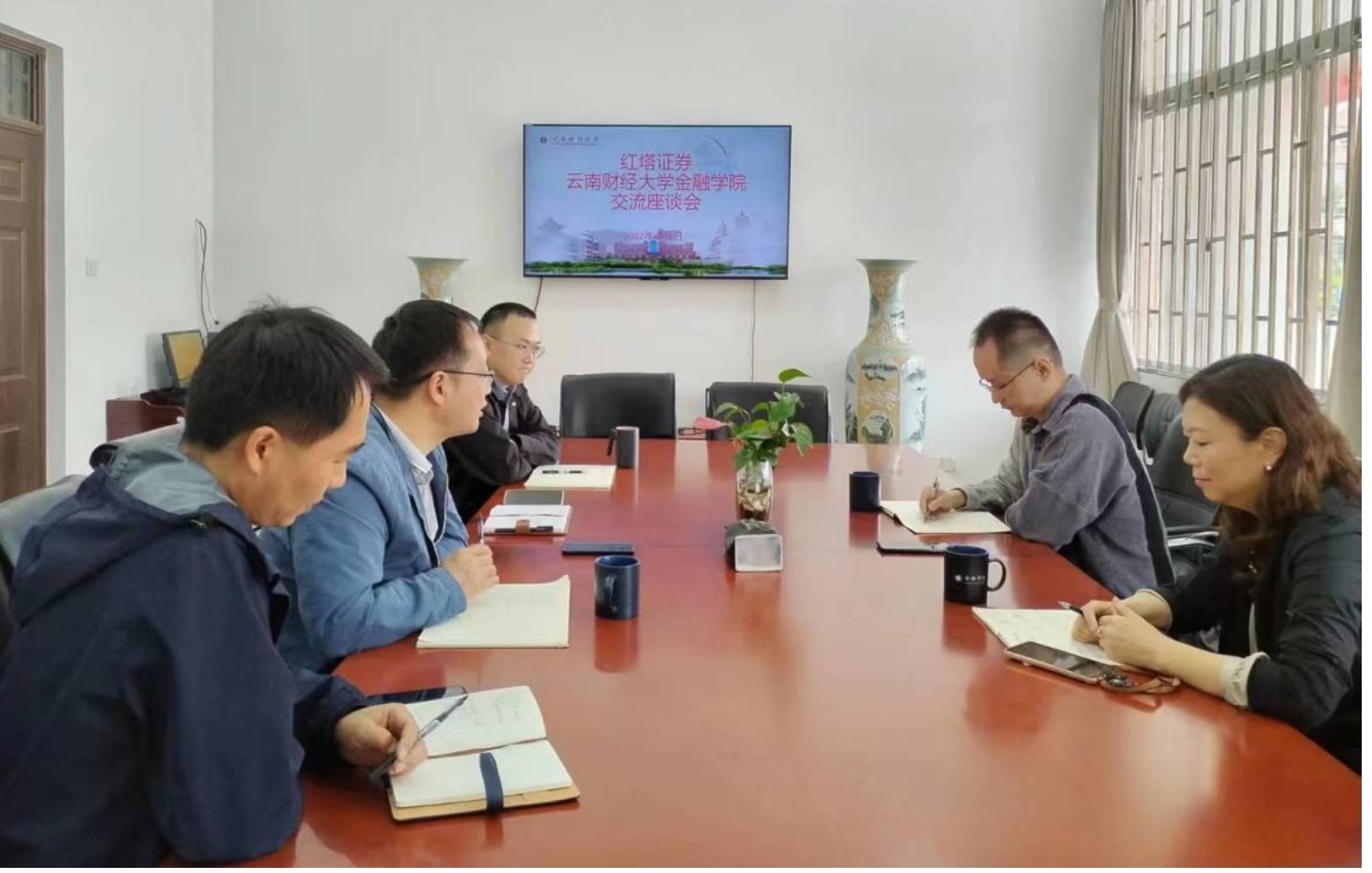6月9日,红塔证券财管中心总经理助理朱懿、红塔证券投资者教育经理陈方到beat365金融学院,与学院党委书记李德清,党委副书记汪薇萍,副院长李江城、杨国辉进行交流座谈。
