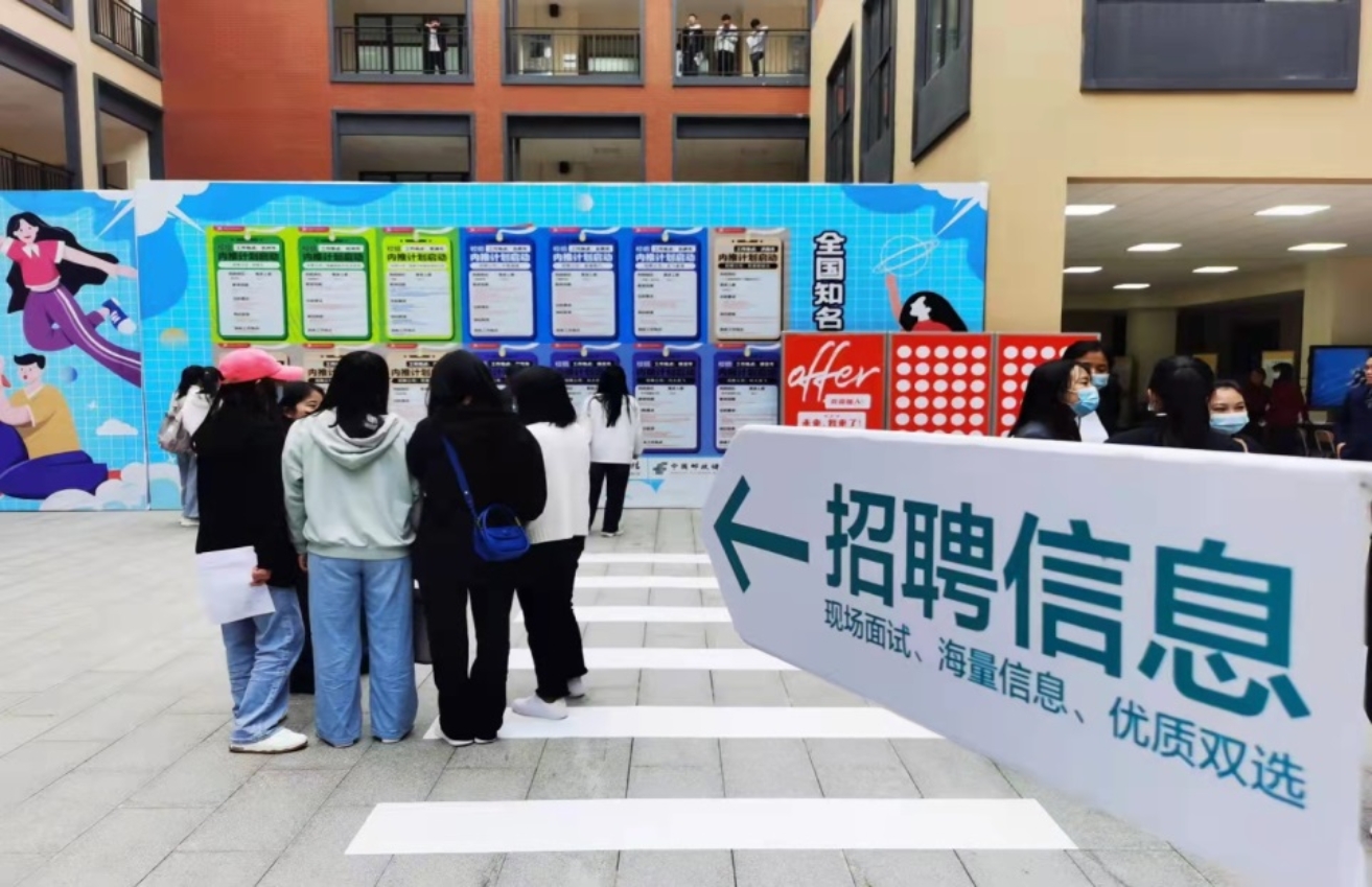 启动仪式结束后,“永不落幕的招聘会”首场招聘在修远楼中庭举行,同学们纷纷进场打卡、参观、咨询。“永不落幕的招聘会”自5月17日启动以来,每天均有企业到学院开展招聘,未能到场企业通过发布招聘简章、宣传视频,由文化管理书院的同学为企业“代言”,代为招聘。