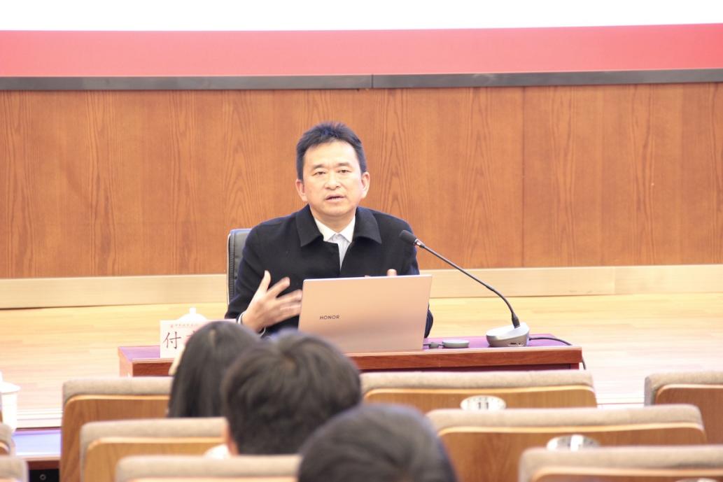 12月16日,云南省教育厅安全稳定处处长付甫剑在鹏云1栋报告厅作“不忘初心敢担当,牢记使命保平安”主题讲座,此次讲座也是中华职业学院2021年度“双百双进”讲座之一。学院领导班子全体成员、师生代表近200人参加讲座。讲座由学院党委书记沙磊主持。