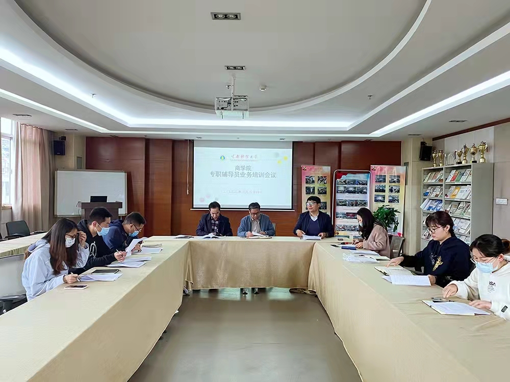 3月24日,商学院在逸夫楼521会议室召开专职辅导员业务培训会。本次培训会由学院学生管理科科长朱次毅主持,学院党委副书记蒋见证、正处级辅导员杨世兵及商学院全体专职辅导员参加。