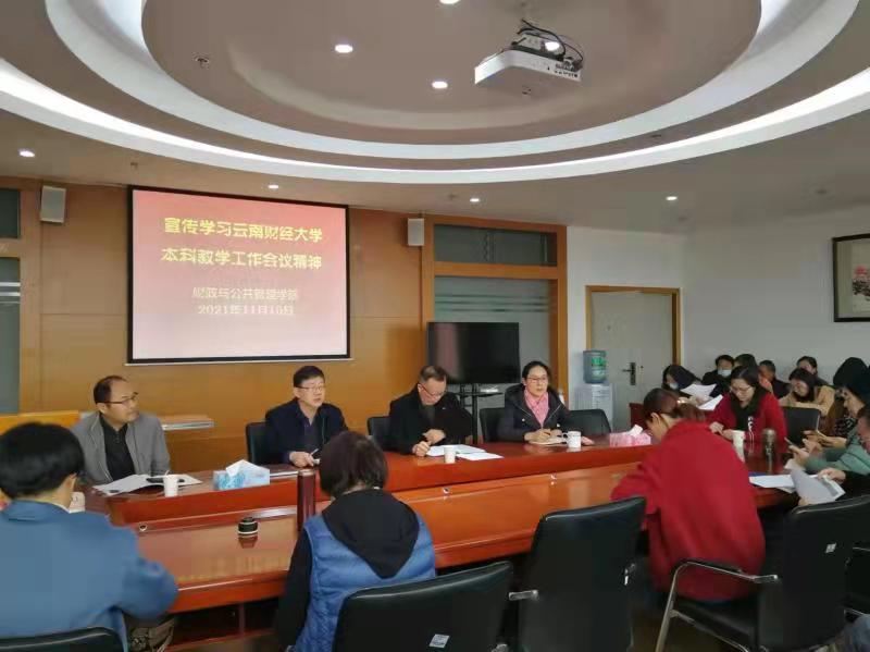 11月10日下午,财政与公共管理学院在逸夫楼923会议室召开会议,集体学习贯彻2021年beat365英国官方网站本科教学工作会议精神。副院长韩全芳主持会议。