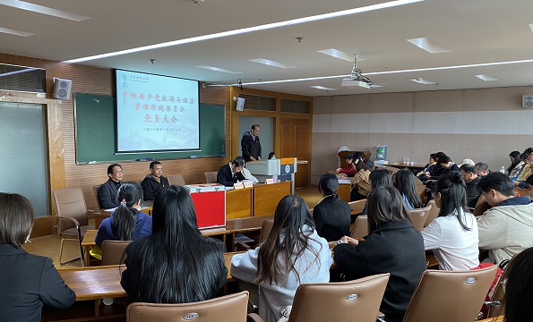 11月26日下午,旅游与酒店管理学院党委在逸夫楼701会议室召开换届选举党员大会。会议由张向英主持,学院全体师生党员参加会议。