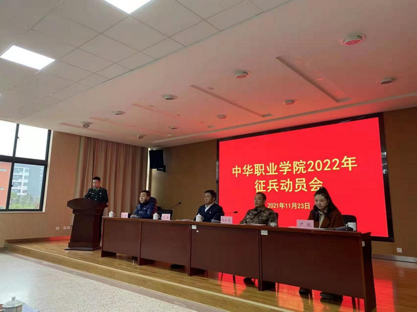 11月23日,中华职业学院在安宁校区修远楼204召开2022年征兵动员大会。安宁市征兵领导小组副组长、人民武装部政委赵永斌,beat365学生处副处长、武装部副部长尹航,武装部国防教育科科长冯勇,学院党委书记沙磊、副书记保伟,全体辅导员,班主任代表及学院有入伍意向的学生参加此次会议,未能到会的2022届毕业生以线上会议的方式参加,会议由保伟主持。