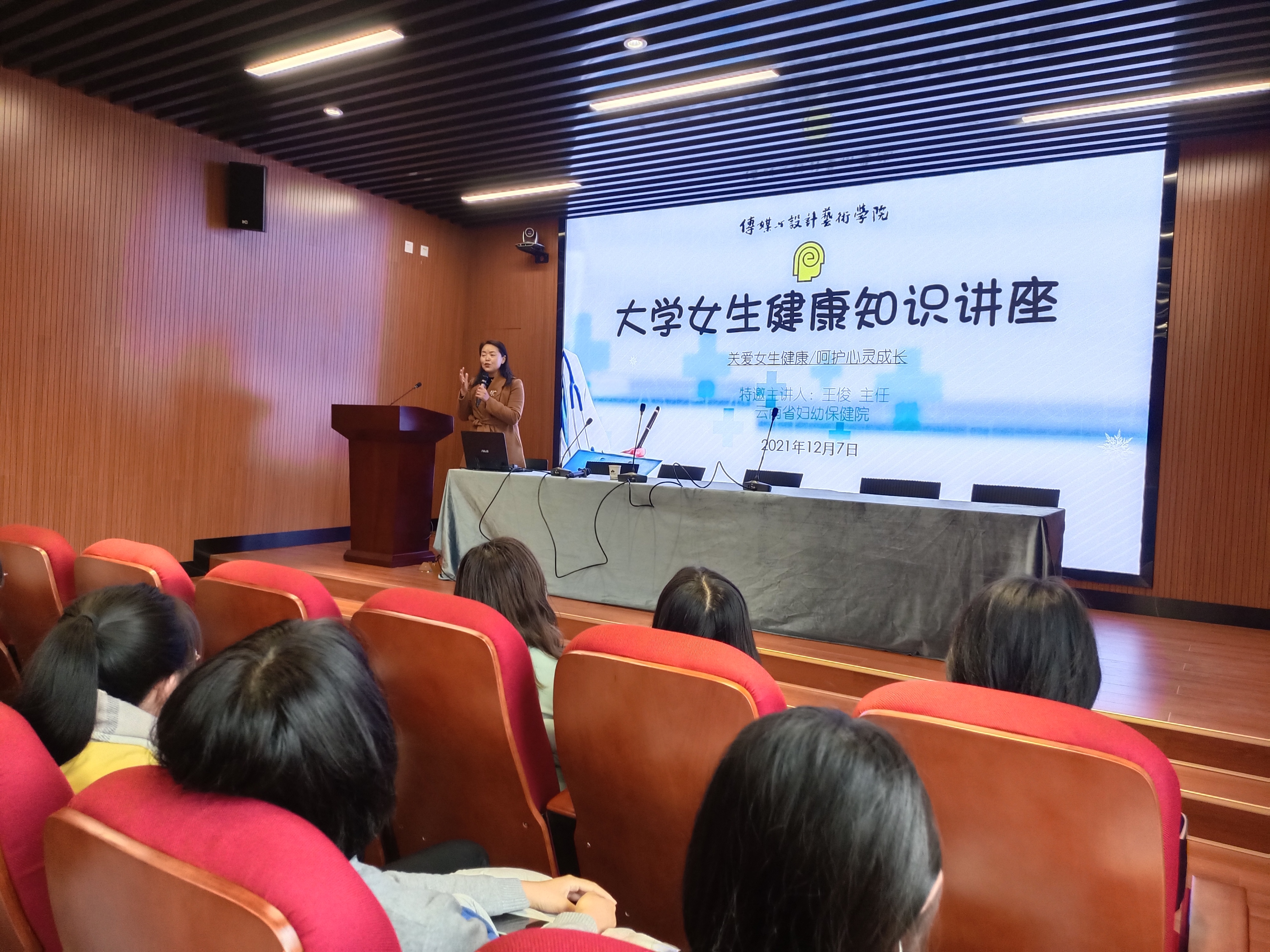 12月7日下午,传媒与设计艺术学院特邀云南妇幼保健院妇女保健科主任医师王俊到学院开展“关爱女生健康,呵护心灵成长”大学女生健康知识讲座。本次会议由学生管理科科长黄思佳老师主持,云南妇幼保健院副主任医师赵粉花和学院的100余名女同学一起参加了讲座。