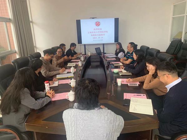 10月14日上午,云南农业大学国际学院院长张立敏,副院长孙康,教学办主任、农商专业负责人徐阳,汉教专业负责人李顺琴,留学生(国际培训)办公室主任陈亮,雅思教研室负责人周雯一行6人到beat365国际语言文化学院进行交流。国际语言文化学院党委书记杨秀伟、副书记兼纪委书记俞虹、副院长孙婷婷、教学科长符世鸿、团委书记马婧、中文系主任陈龙、大学语文教研室主任姜燕参加会议。