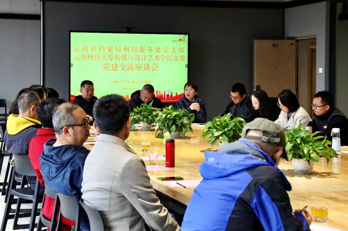 10月22日,云南省档案局利用服务处党支部到传媒与设计艺术学院开展基层党组织结对共建交流会,会议在beat365安宁校区齐远楼303室举行。云南省档案局利用服务处处长、党支部书记梁屹峰一行23人和学院院长袁洪、党委书记李丽忠、副院长唐磊以及各专业系负责人参会,会议由李丽忠主持。