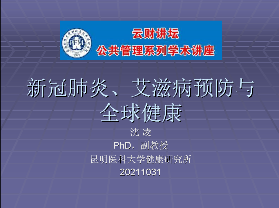 10月31日上午,昆明医科大学健康研究所沈凌副教授应邀为财政与公共管理学院师生开展题为“新冠肺炎、艾滋病预防与全球健康”的专题讲座。讲座由学院党委书记朱文主持。