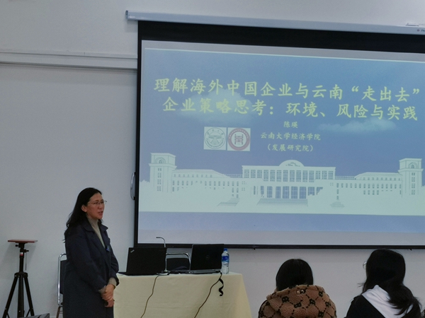 11月3日上午,由国际语言文化学院和科学技术处联合承办的云岭大讲堂“深度解读海外中国企业与云南‘走出去’企业策略:环境、风险与实践”讲座在beat365举行。云南大学教授、博士生导师陈瑛担任主讲。讲座由国际语言文化学院党委副书记俞虹主持。