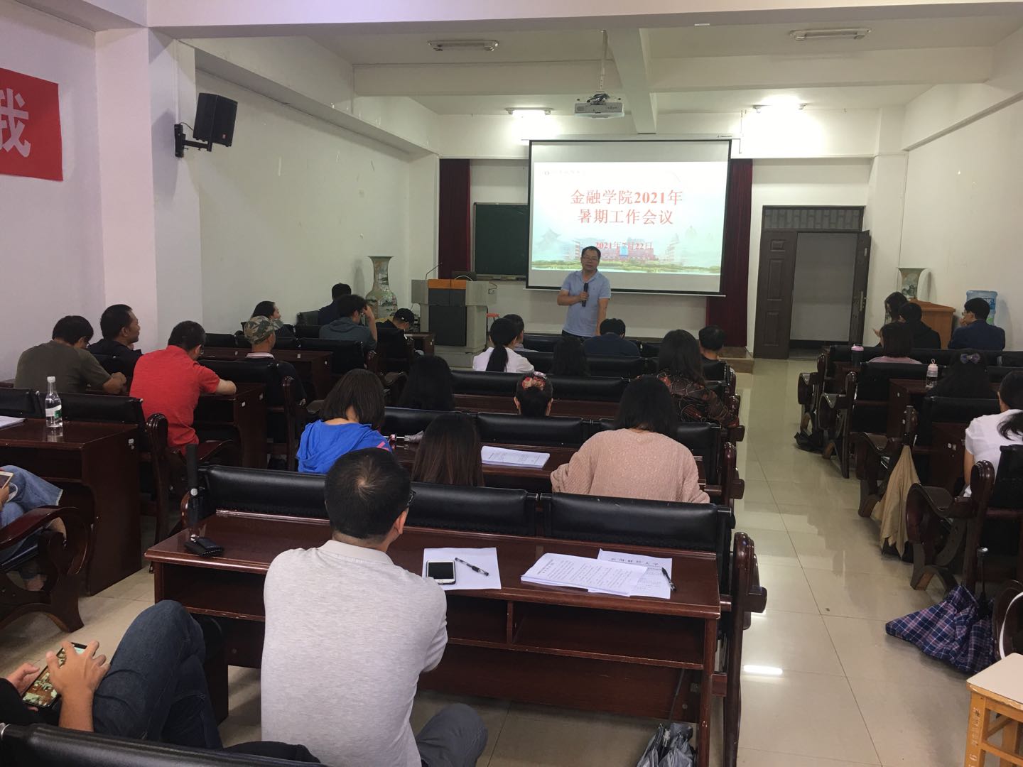 7月22日下午,金融学院在博远楼103会议室召开2021年暑期工作会议,总结上半年工作成绩,安排部署暑期重点工作。会议由院长熊德平主持,全体教职工参加。