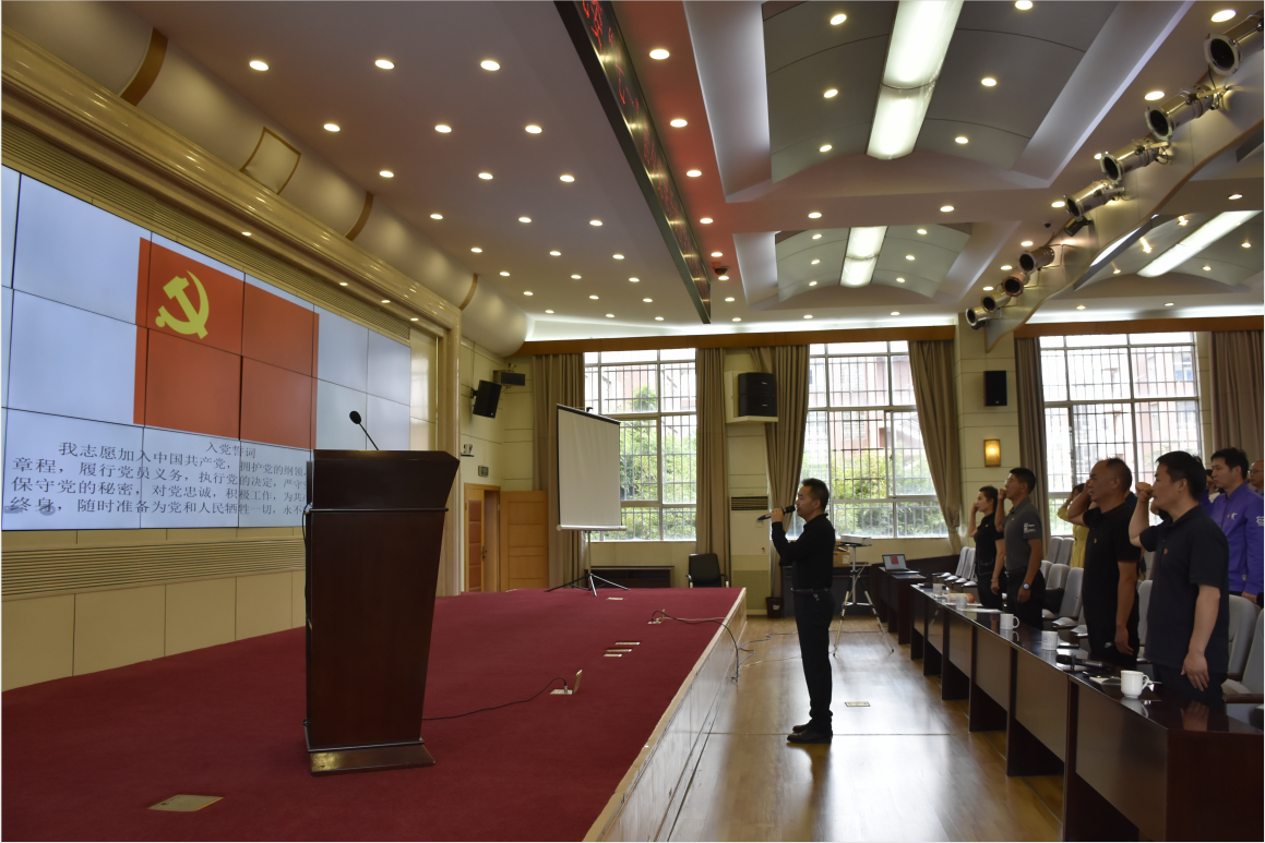 段云赋带领集团5名新党员和60余名老党员面向党旗庄严宣誓。