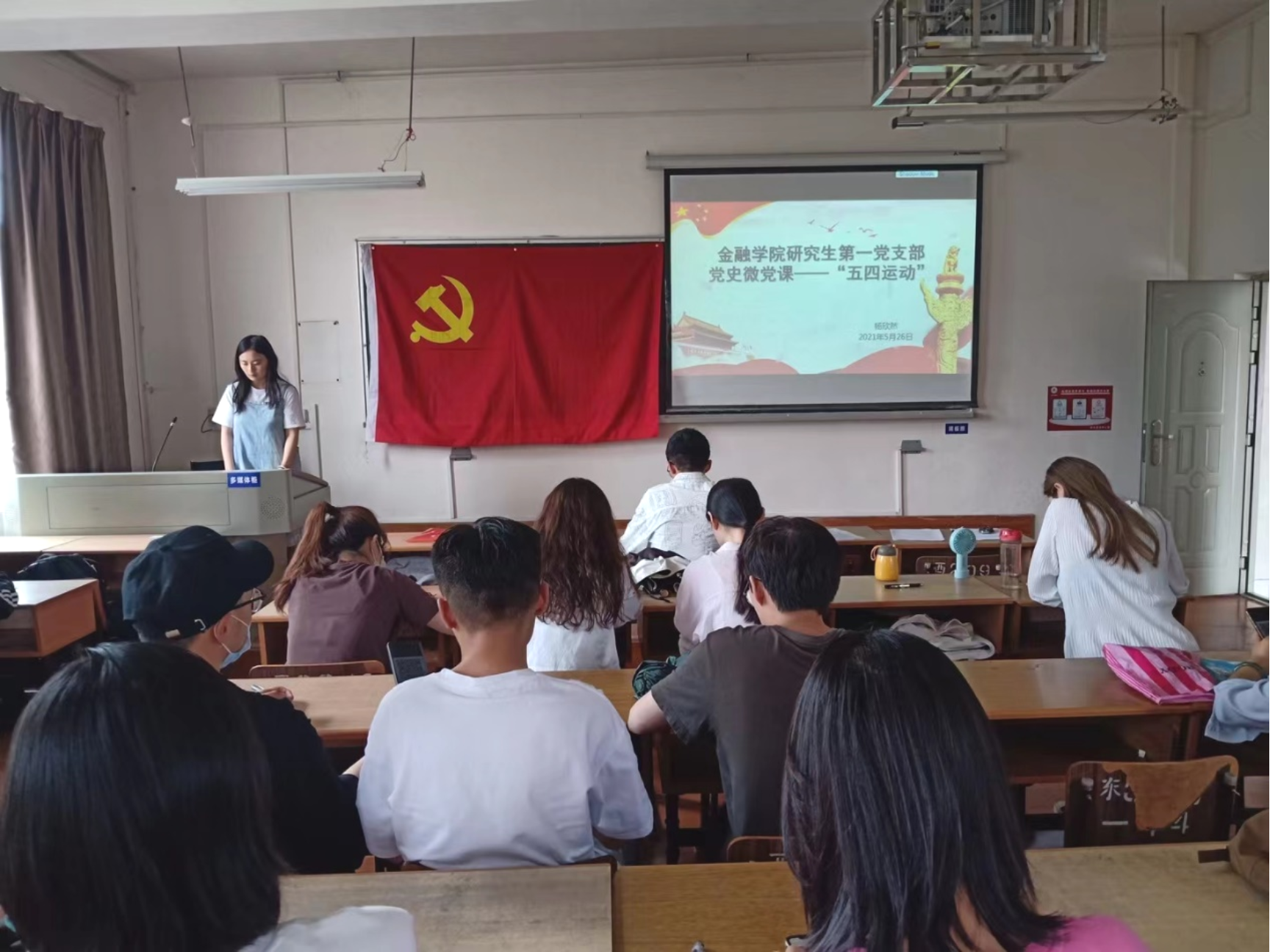 5月26日下午,为深入开展党史学习教育,感受百年风华,金融学院研究生第一党支部在思远楼301教室开展首次微党课主题党日活动——重温“五四运动”。活动由研究生第一党支部书记汪薇萍主持,支部委员杨欣然进行主讲,支部全体党员参加活动。