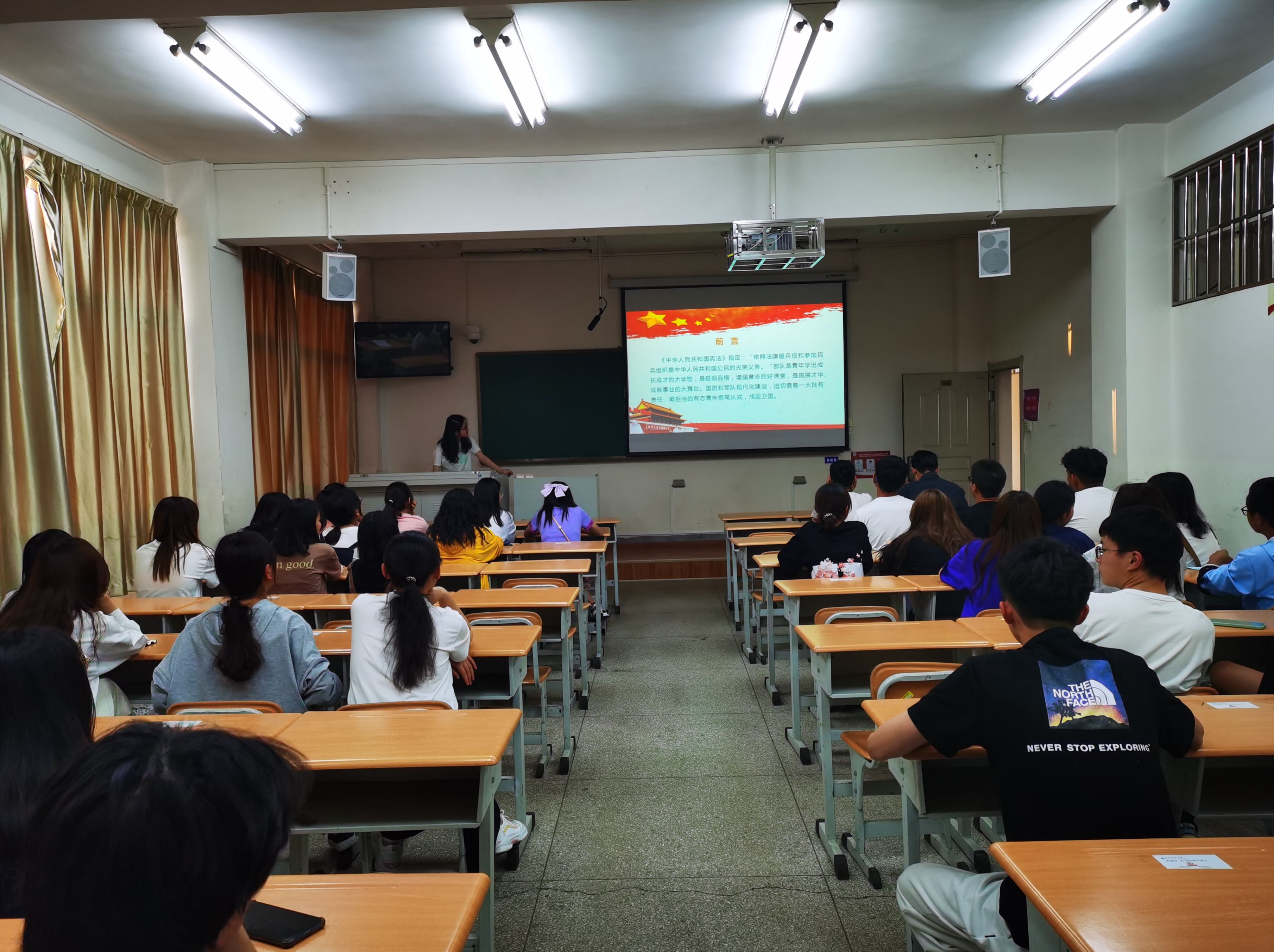 为鼓励在校大学生积极参与应征入伍,加强学院学生对征兵政策的了解,5月9日晚,统计与数学学院组织全体本科班级举办以“参军报国•无上光荣”为题的主题班会。