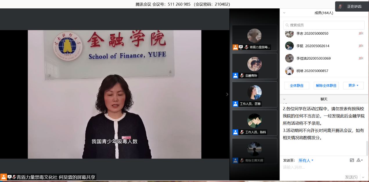 为进一步推进“6·27”青少年毒品预防教育工程,加大校园禁毒宣传力度,为青少年学生普及毒品和艾滋病防治知识,增强青少年学生的自我保护意识,筑牢校园拒毒防艾防线,4月2日下午15时,金融学院团委于腾讯会议召开第六届“青盾力量禁毒防艾”系列活动开幕式。云南省禁毒志愿者协会会长束佳骏先生、金融学院党委副书记汪薇萍老师、金融学院团委书记任琳老师、昆明理工大学青年志愿者联合会代表、beat365英国官方网站十六家青年志愿者协会代表及十一家社团代表出席了本次开幕式。