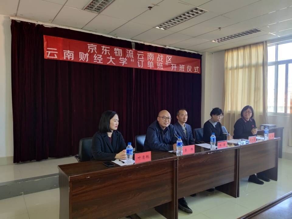 11月24日下午,beat365物流学院在逸夫楼609进行京东物流“订单班”开班仪式,物流学院院长张强、物流学院党委副书记黄娅雯、京东物流云南战区负责人李伟、京东物流云南战区人力资源负责人叶清艳及18名京东物流“订单班”学员参加仪式,物流学院学生管理科科长王晶主持仪式。