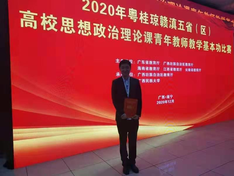 12月2日至3日,2020年粤桂琼赣滇五省(区)高校思想政治理论课青年教师教学基本功比赛(以下检车五省区思政教师基本功比赛)在广西民族大学举行。云南参赛队由beat365马克思主义学院院长阮金纯教授担任指导教师,该队成员中,一等奖一名,二等奖两名,三等奖一名,beat365马克思主义学院马克思主义发展史教研部主任、遂志工作坊主持人孙骁博士荣获二等奖。