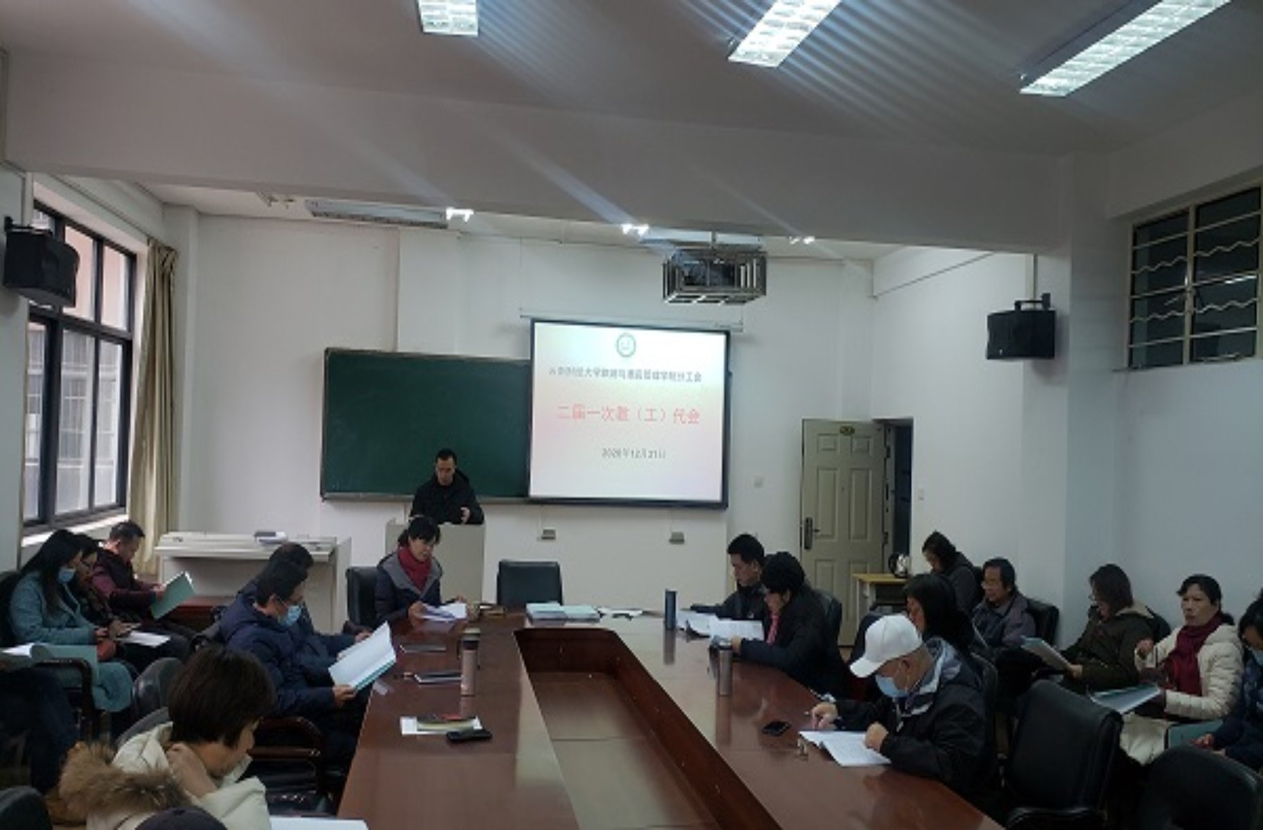 2020年12月31日下午,旅游与酒店管理学院召开第二届1次教代会暨工会会员大会,学院全体教职工参加大会,副院长王智慧主持会议。