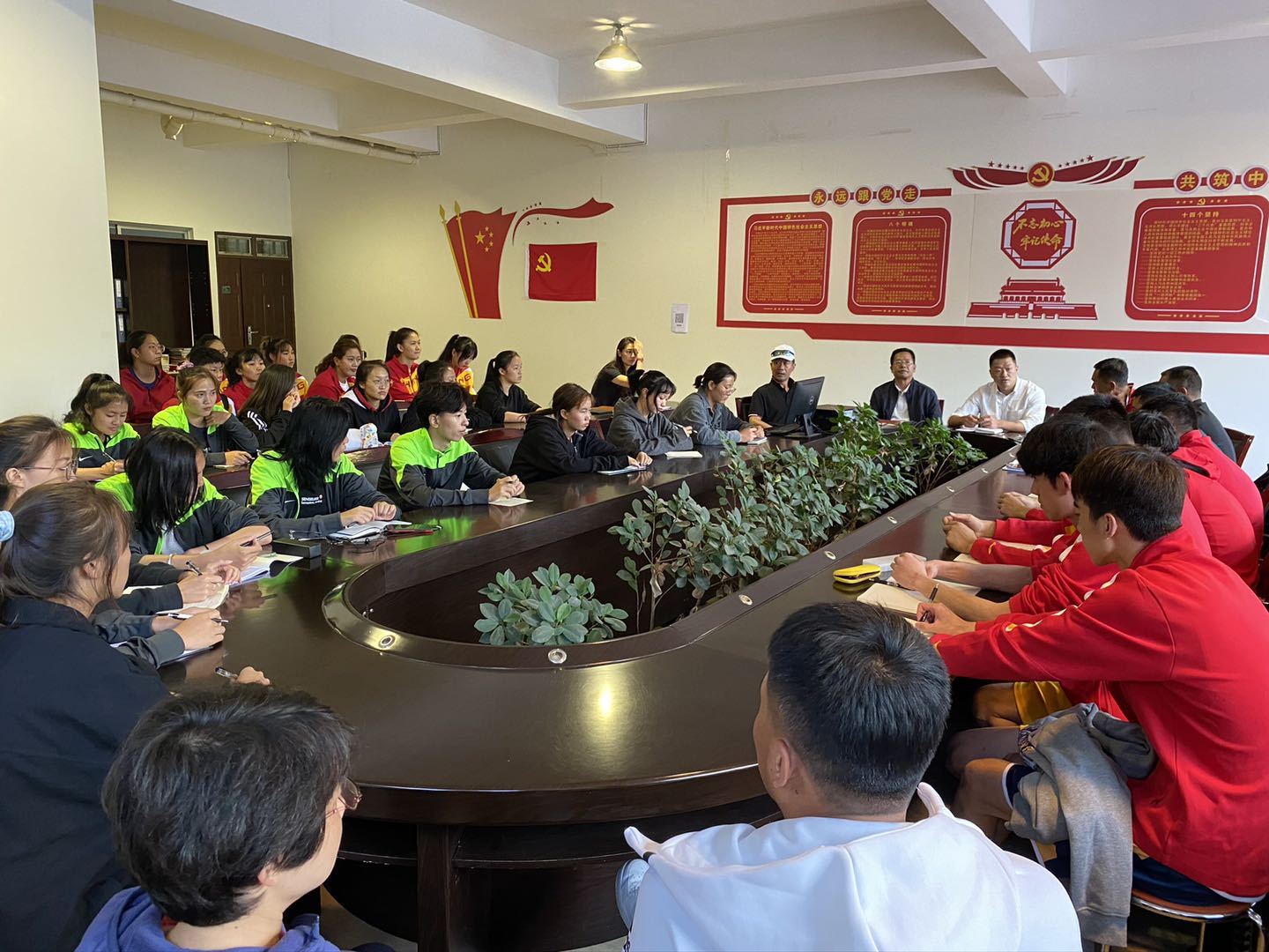 体育部直属党支部书记包继礼从纪律、团结、平台等方面要求全体高水平运动员严格遵守校纪校规队规,在大学校园里起到模范引领作用。