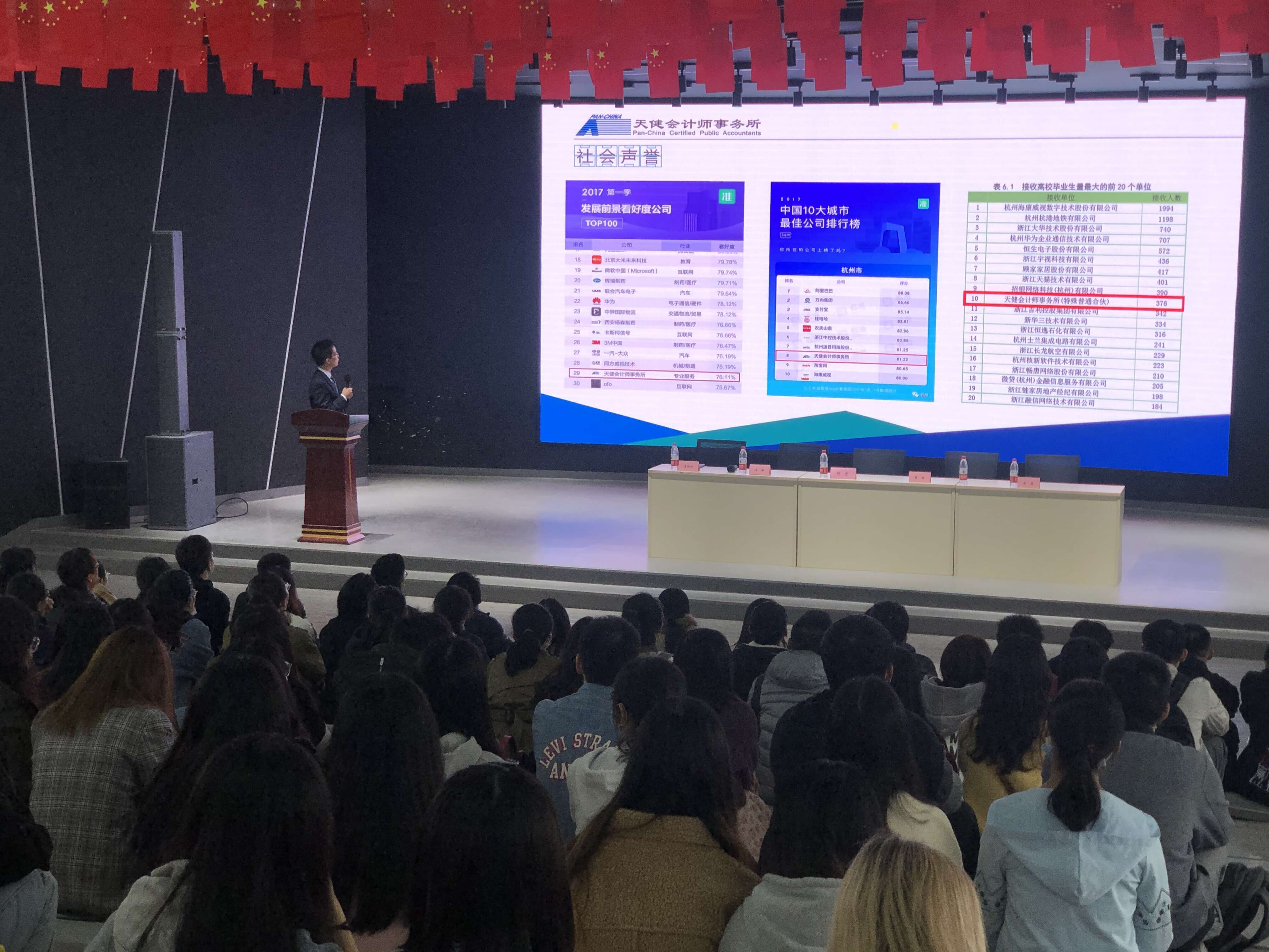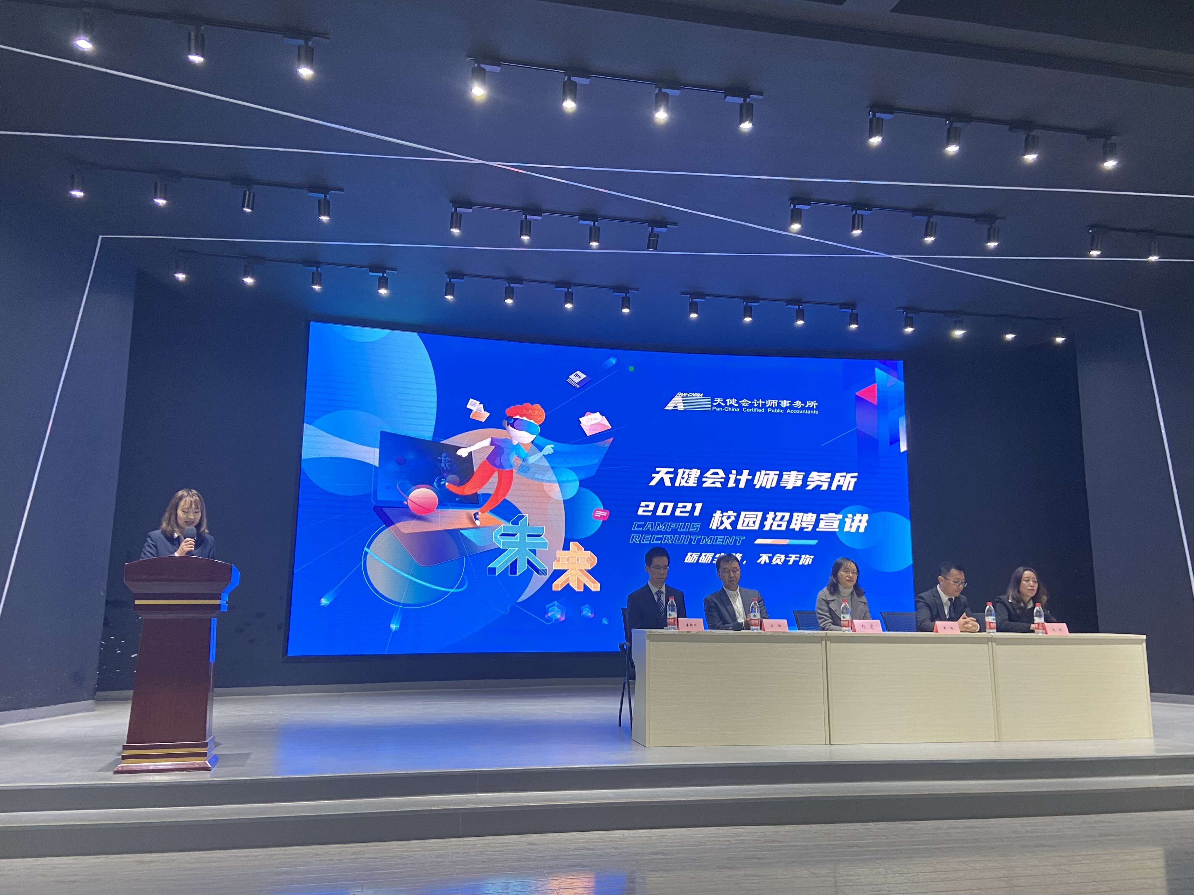 beat3652010届优秀毕业生、技术部经理张霞受邀为同学们作分享。她介绍了企业文化和员工发展平台,希望更多优秀的学弟学妹加入到天健会计师事务所,共同成长。