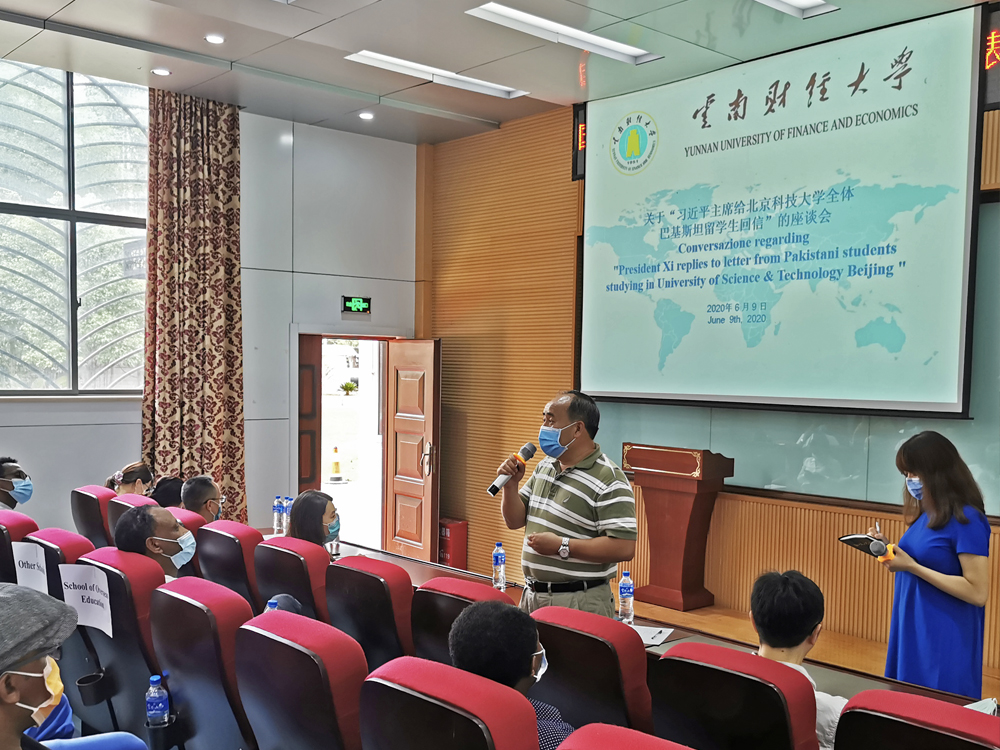 6月9日下午4点,由海外学院和国际学生教育管理中心组织全体在校留学生学习《习近平给北京科技大学全体巴基斯坦留学生回信》。习近平主席在信中对各国优秀青年来华学习深造表示欢迎,鼓励他们多同中国青年交流,同世界各国青年一道,携手为促进民心相通、推动构建人类命运共同体贡献力量。